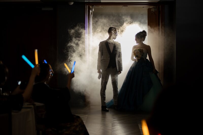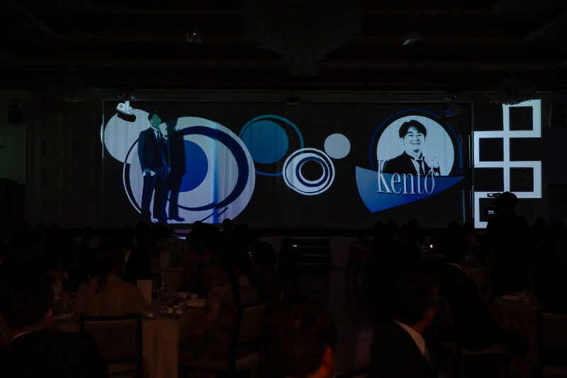 大画面のスクリーンと連動した光の演出で、パーティーの始まりを一気に盛り上げます。