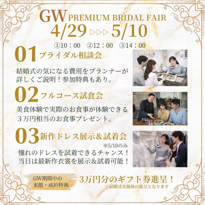 ※新作ドレス展示&試着会は5/10のフェアのみとなっております。