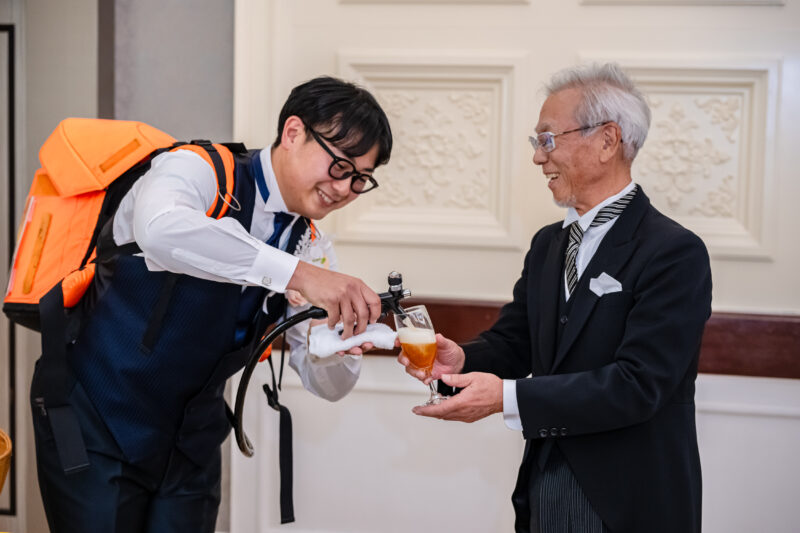 各テーブルを周るビールサーブもゲストの方々と言葉を